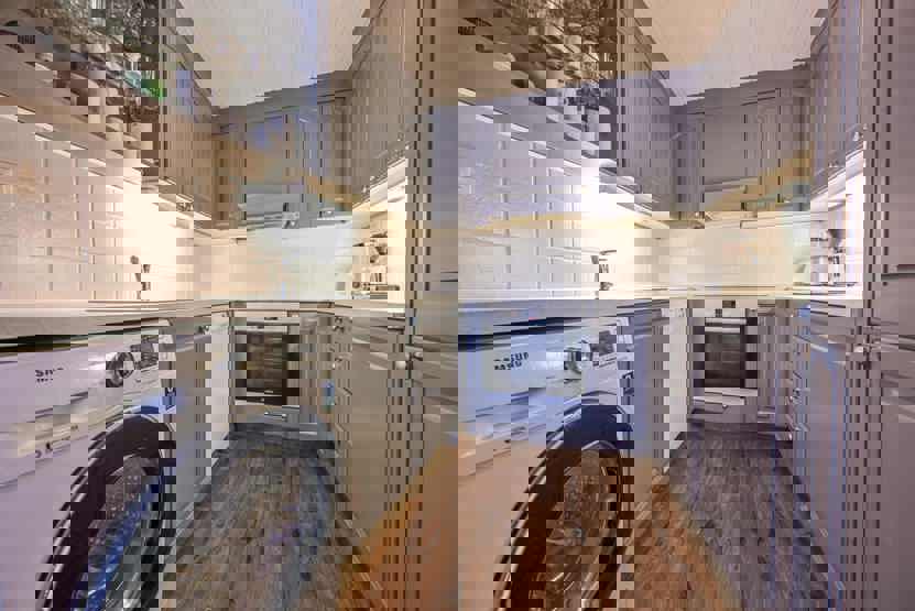 Enheden har komfur, ovn, opvaskemaskine, mikrobølgeovn, køleskab, fryser.