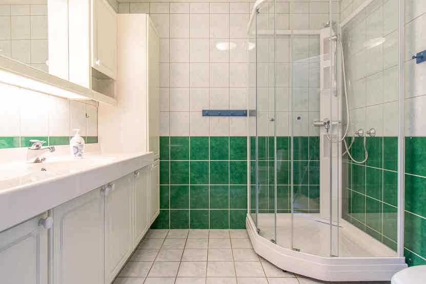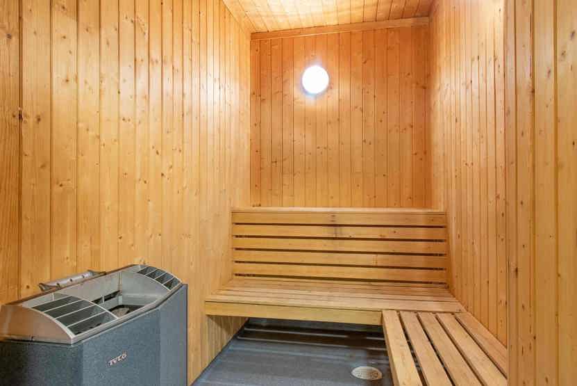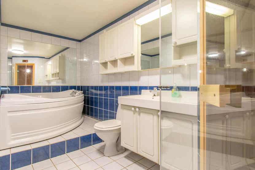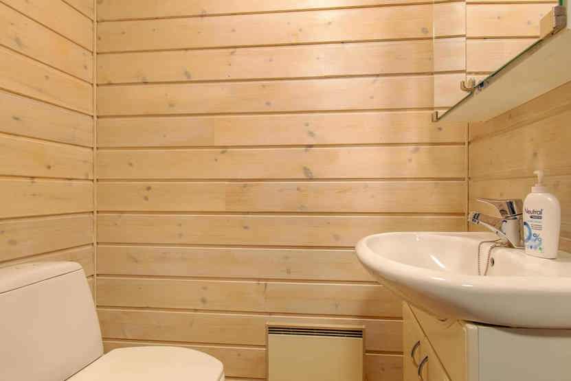 Bad 1 med bruser og WC. Bad 2 med bruser, WC, sauna og boblebad. Bad 3 med WC.