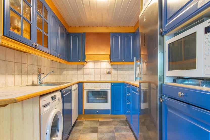 Enheden har komfur, ovn, opvaskemaskine, mikrobølgeovn, køleskab, fryser.