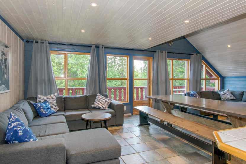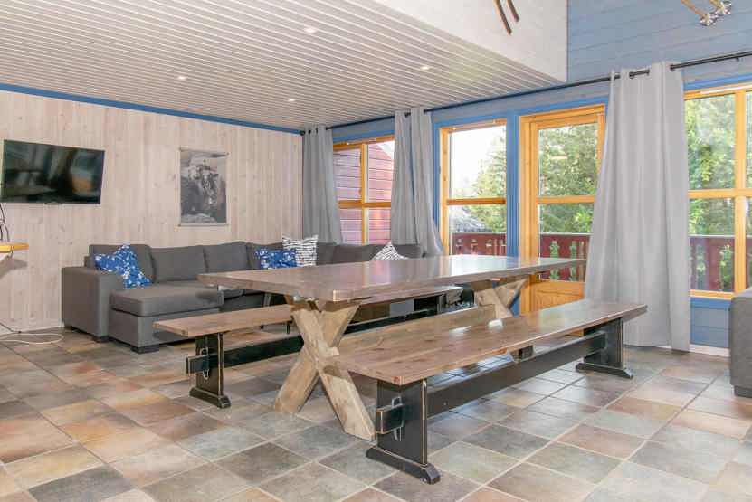 Lejligheden er i 2 etager og ligger på 1.sal, bedst egnet til 14 personer. 14+2 sengepladser 132 m², opholdsstue med brændeovn, TV og køkkenafdeling, spisebord og bænke. 5 soveværelser, 2 brusere, 3 WC, 1 sauna, boblebad, vaskemaskine. Afstande: skilift 50 meter, langrendsløjper 300 meter, Afhængigt af sneforholdene kan afstanden til lift/bakke variere.