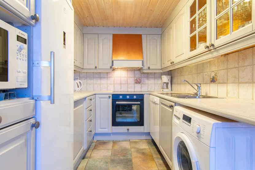 Enheden har komfur, ovn, opvaskemaskine, mikrobølgeovn, køleskab, fryser.