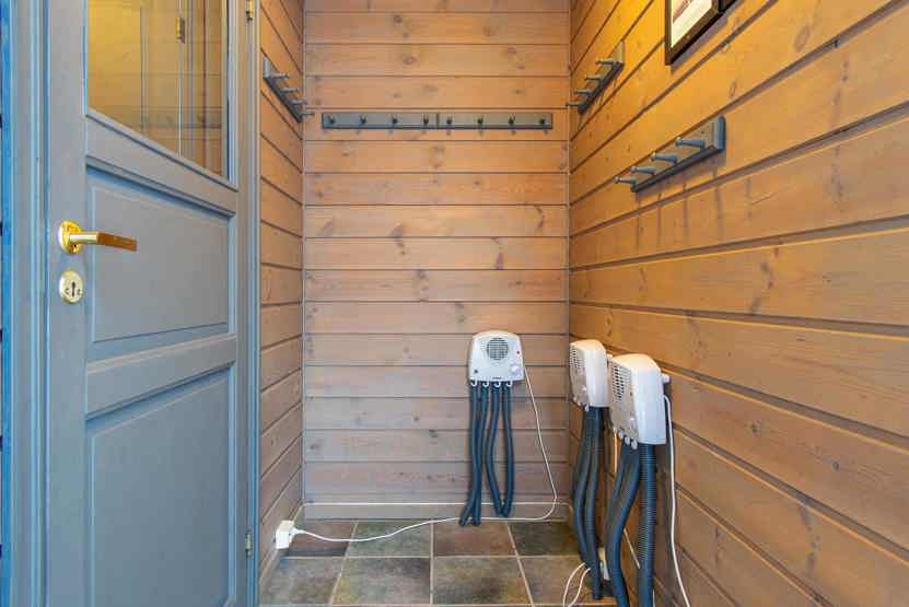 Skiopbevaring, tørremulighed: (skab med varmeovn), vaskemaskine, 3 skotørrer, adgang til elbilopladere med type 2 stik mod betaling.