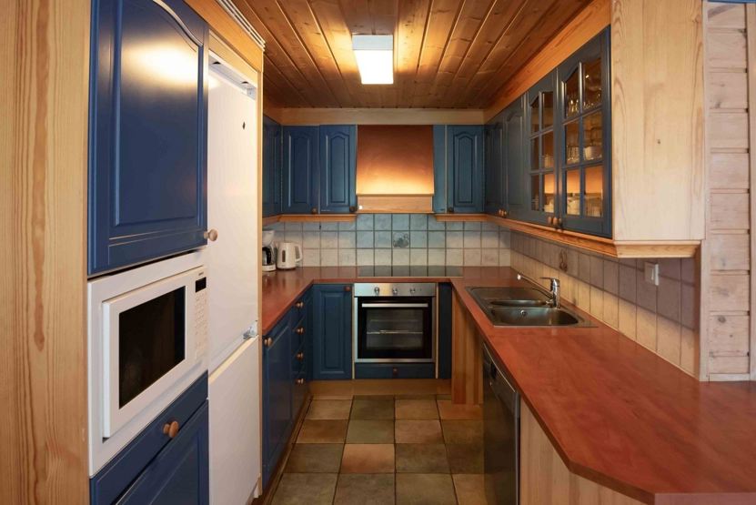 Køkken: Enheden har komfur, ovn, opvaskemaskine, mikrobølgeovn, køleskab, fryser.