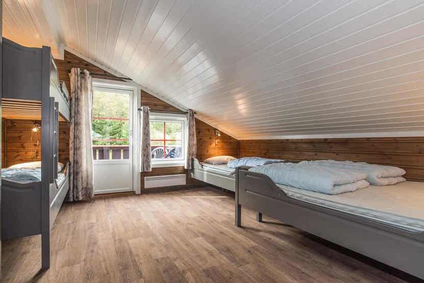 Soveværelse 3: 2 dobbeltsenge, 1 køjeseng. Soveværelse 4: 1 køjeseng med 120 cm bred underkøje. Soveværelse 5: 1 køjeseng med 150 cm bred underkøje.