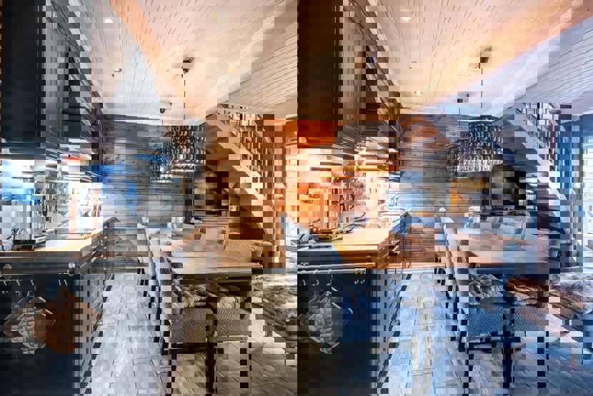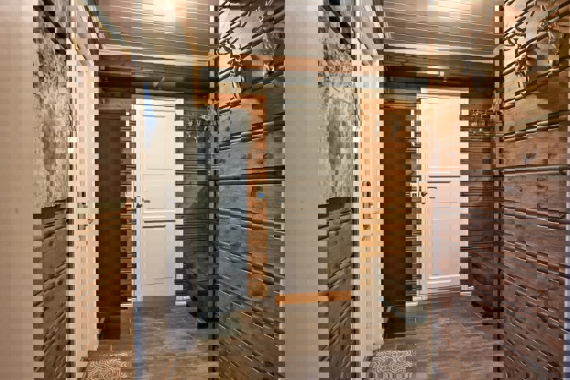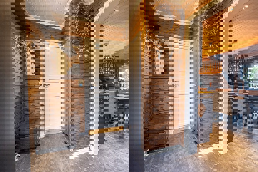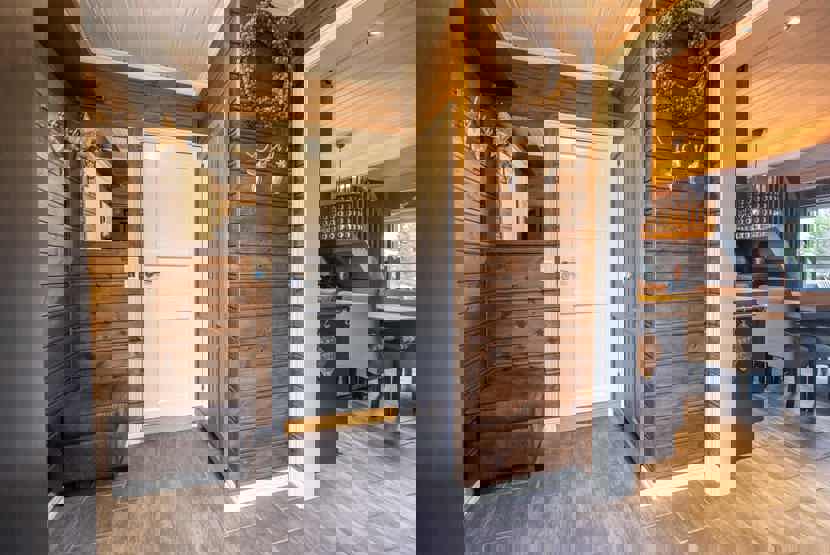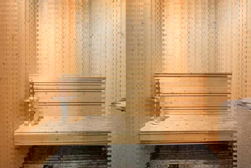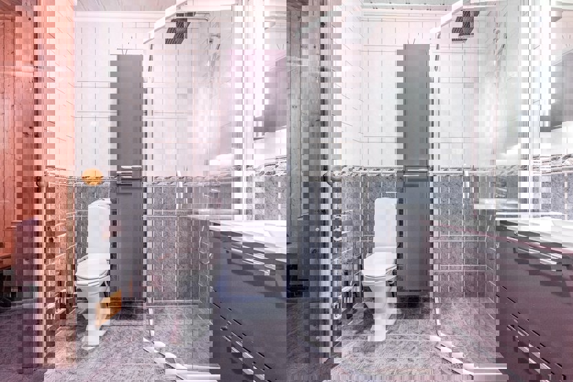 Bad 1: Bruser og WC. Bad 2: Bruser, WC og sauna.