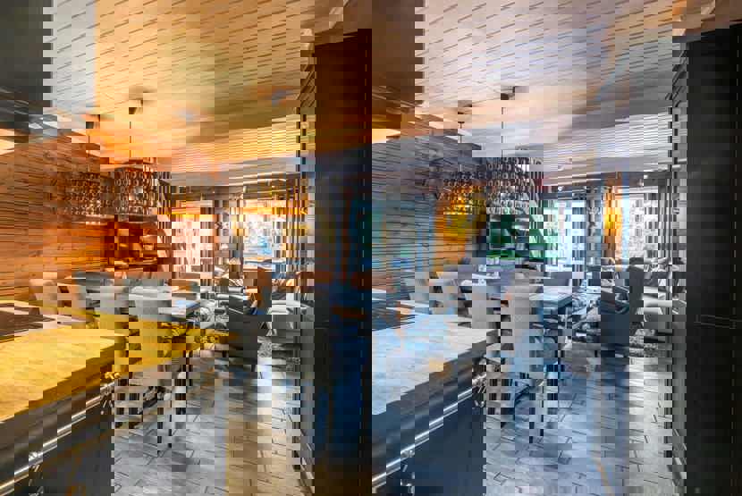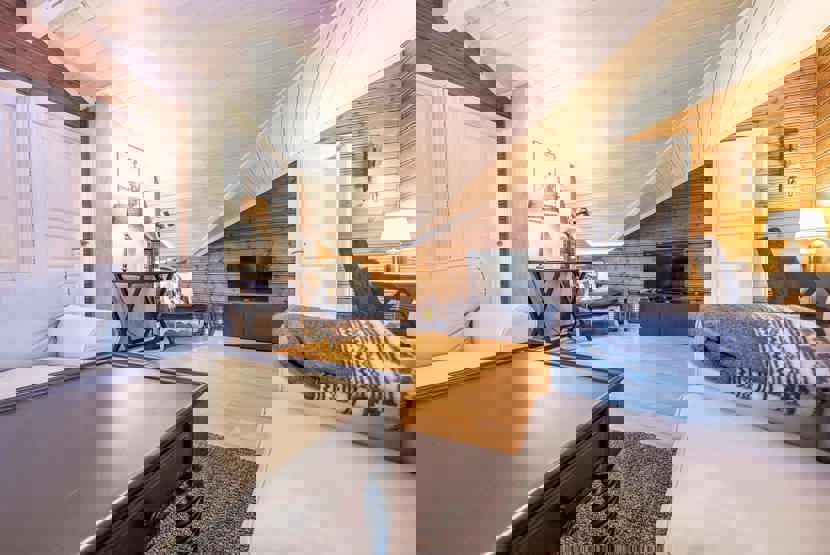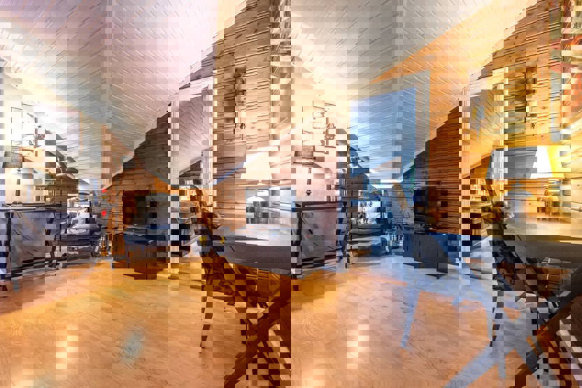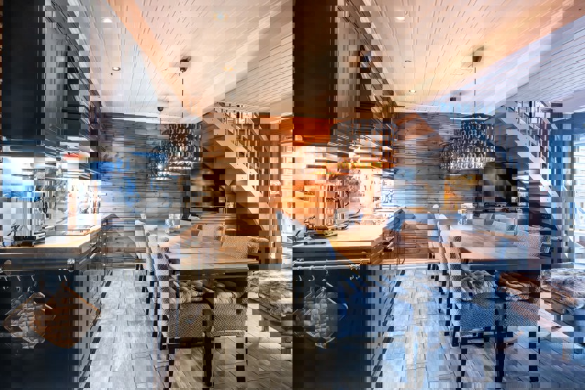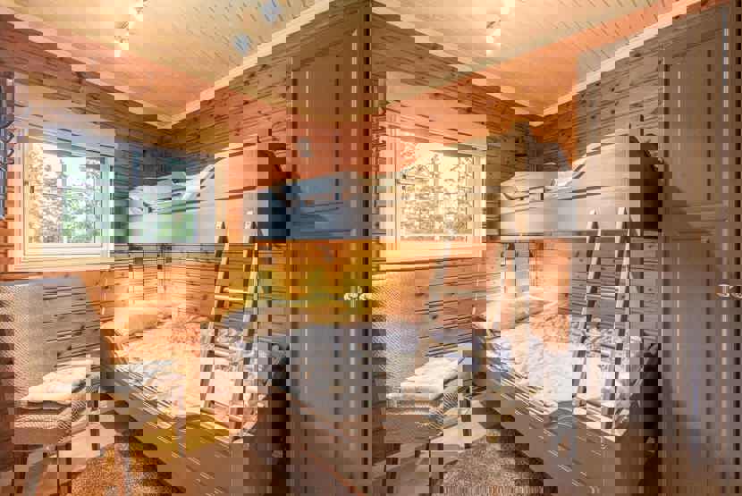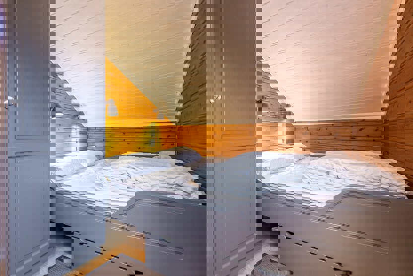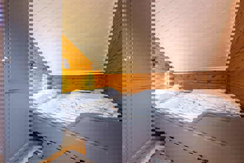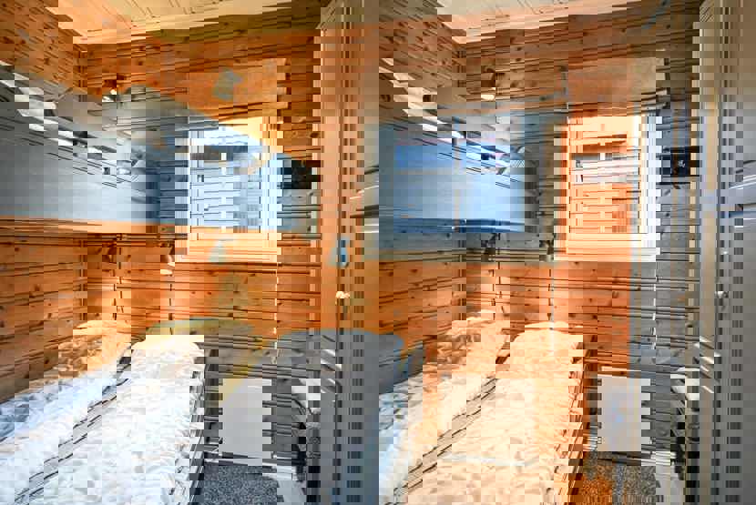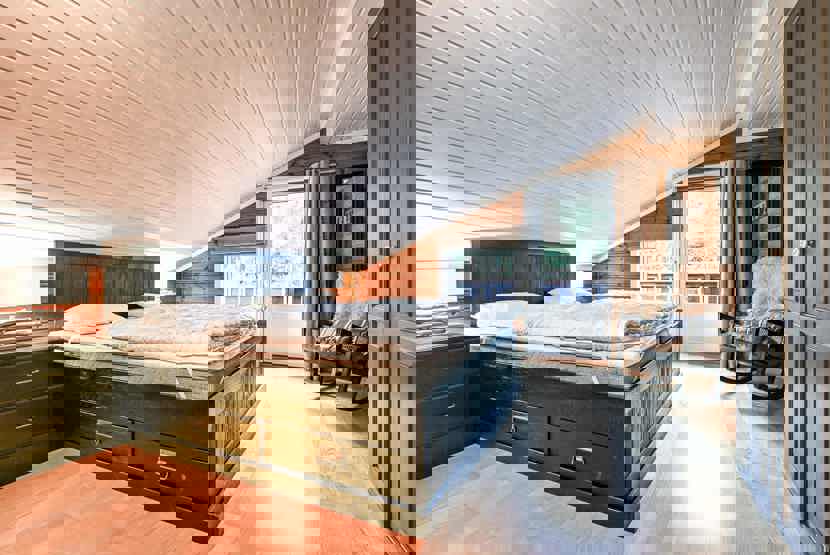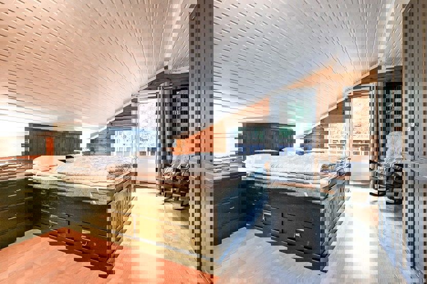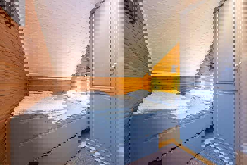 Soveværelse 4: 1 køjeseng med 150 cm bred underkøje og 90 cm bred overkøje. Soveværelse 5: 1 køjeseng med 140 cm bred underkøje og 90 cm bred overkøje.