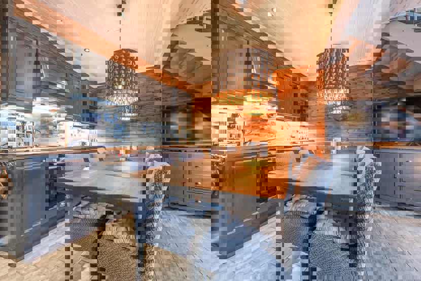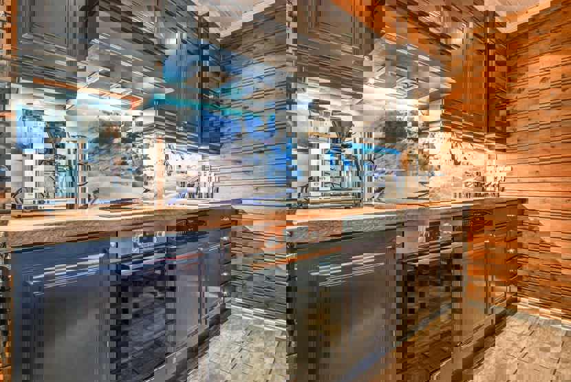 Enheden har komfur med ovn, opvaskemaskine, mikrobølgeovn, køleskab, fryser.