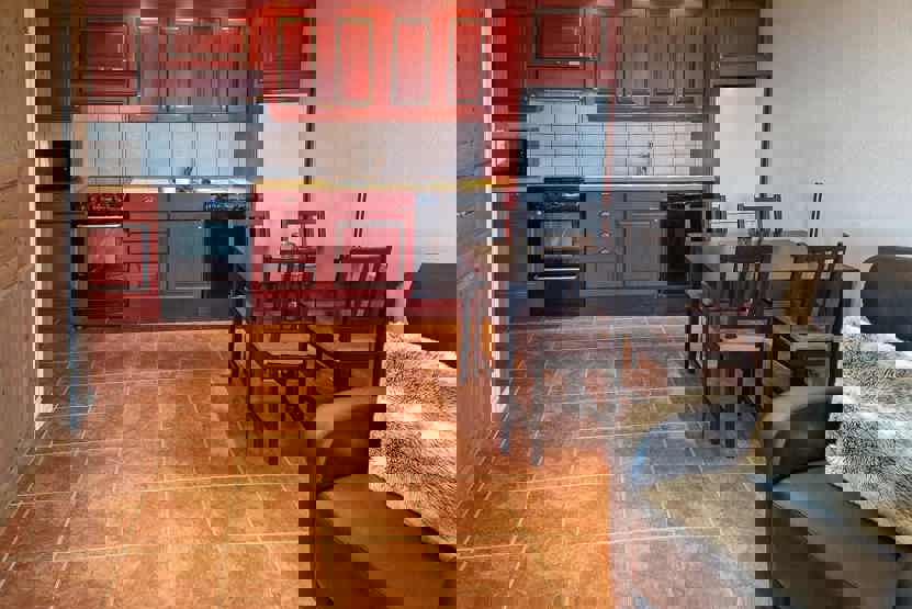 Enheden har komfur med ovn, køleskab, fryser, opvaskemaskine, mikrobølgeovn.