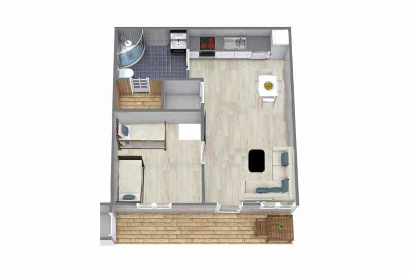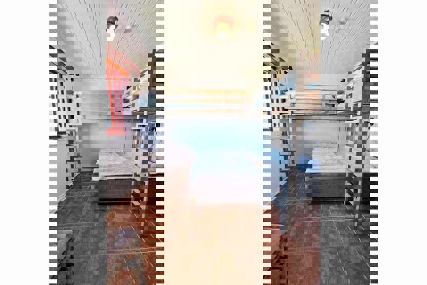 Soveværelse 1: 1 køjeseng med 120 cm bred underkøje, 1 køjeseng.