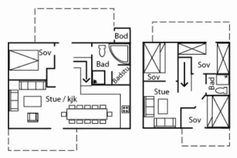 Bjørnlia 725A, lejlighed i stueetage med 12 sengepladser, 110 m², køkkenafdeling, opholdsstue, brændeovn, TV, 4 soveværelser, 2 brusere, 2 WC, 1 sauna, boblebad. Tørreskab, vaskemaskine, tørretumbler, 1 skotørrer. Skiopbevaring, adgang til elbilopladere med type 2 stik mod betaling.
