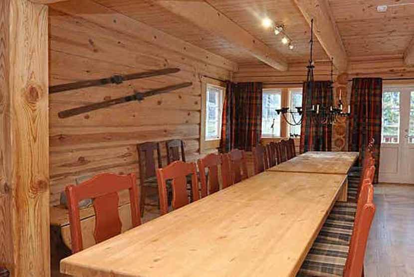 Hytte med 19 sengepladser, 210 m², opholdsstue med pejs, TV og køkkenafdeling, 8 soveværelser, 3 brusere, 3 WC, sauna, boblebad. tørrerum, skiopbevaring.