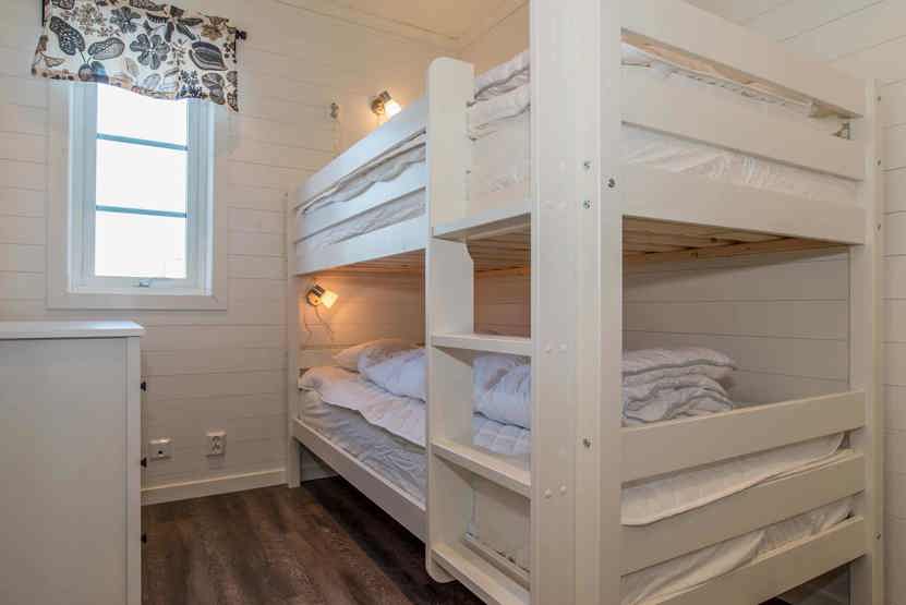 Soveværelse-1= 1 dobbeltseng. Soveværelse-2= 1 dobbeltseng. Soveværelse-3= 1 køjeseng. Sovealkove 1 = 1 dobbeltseng, 2 enkeltsenge.