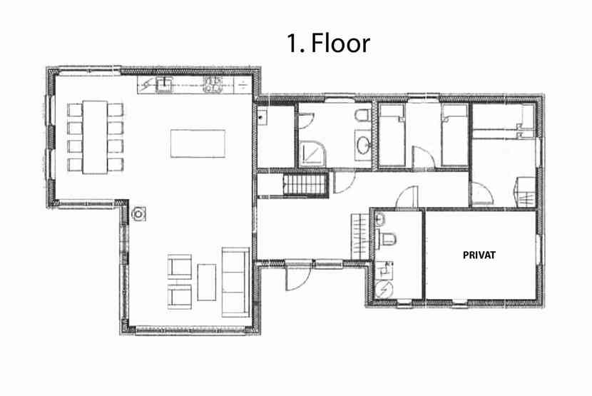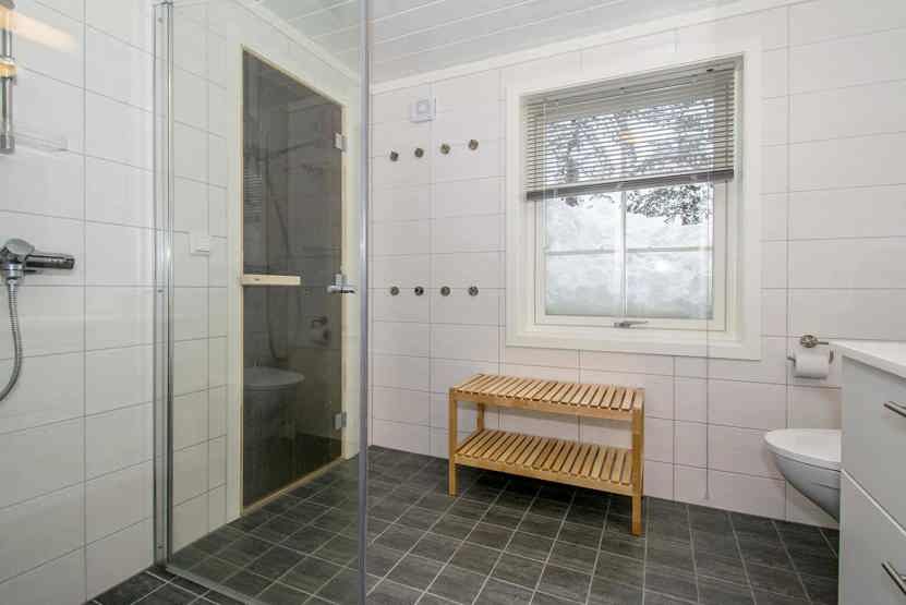 Bad 1: Bruser, WC og sauna. Bad 2: WC.