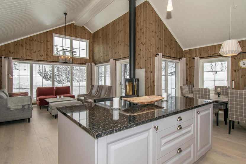 Fageråsen Hytteområde 221A, moderne og flot hytte med 8 sengepladser, 100 m², køkkenafdeling, opholdsstue, pejs, TV, 3 soveværelser og 1 hems, 1 bruser, 2 WC, 1 sauna. Tørrerum , vaskemaskine, skotørrer og terrasse med havemøbler.