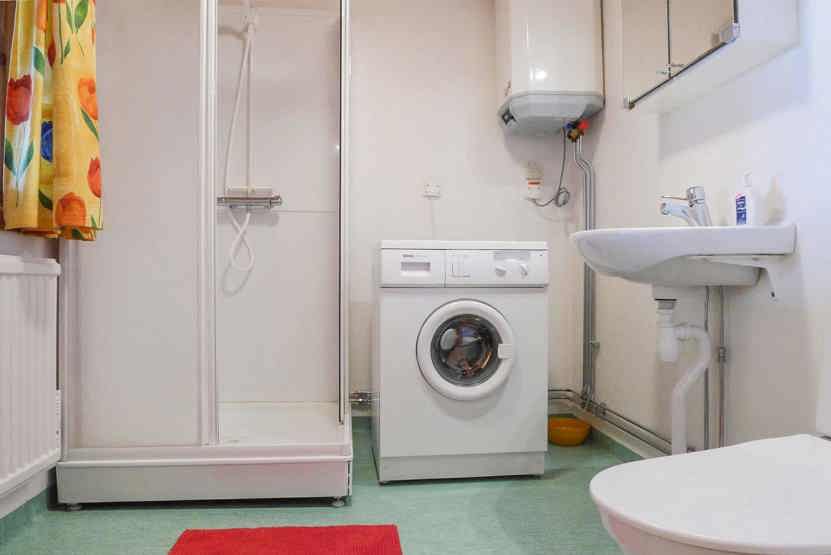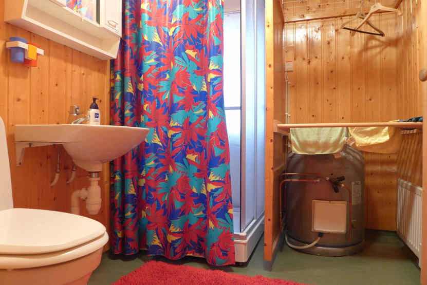 Bad 1: bruser, WC og sauna. Bad 2: bruser og WC.
