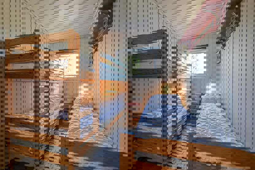 Soveværelse 3: 1 køjeseng med 120 cm bred underkøje og 75 cm bred overkøje.