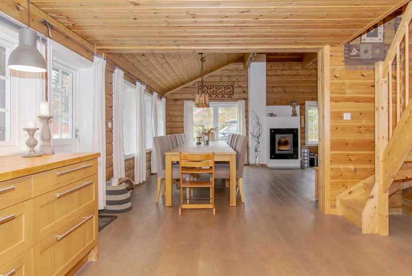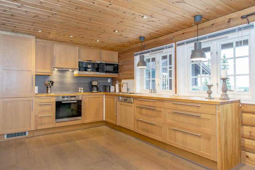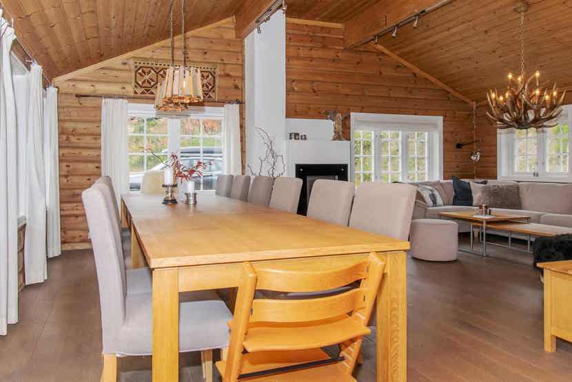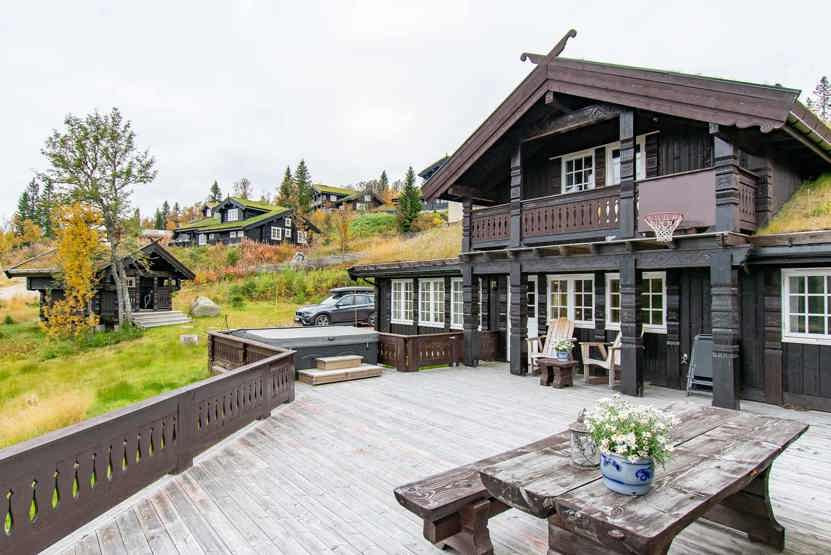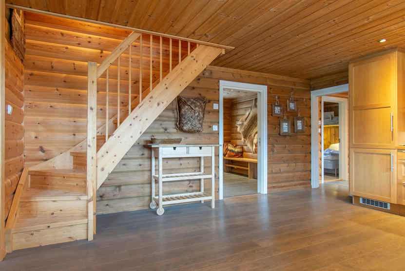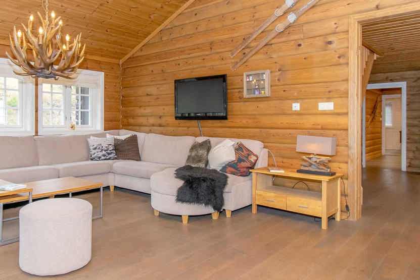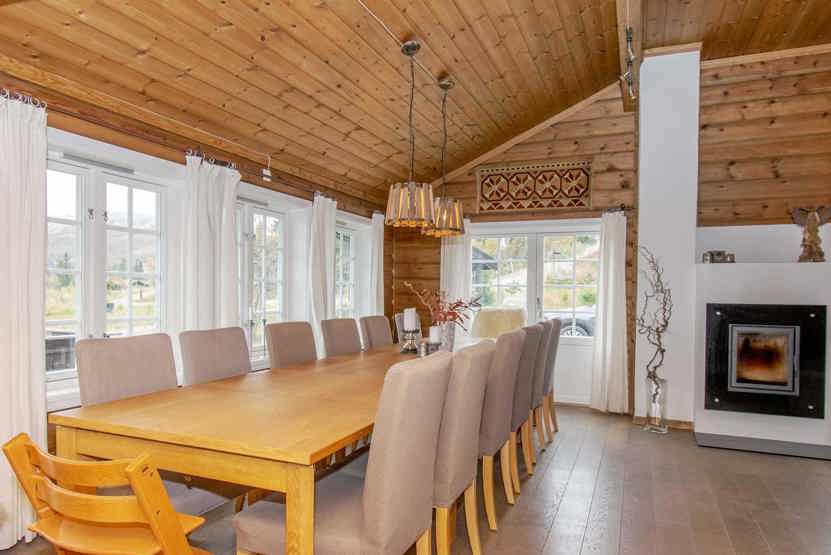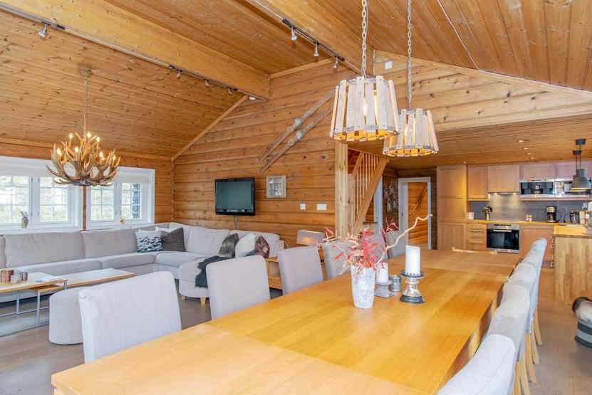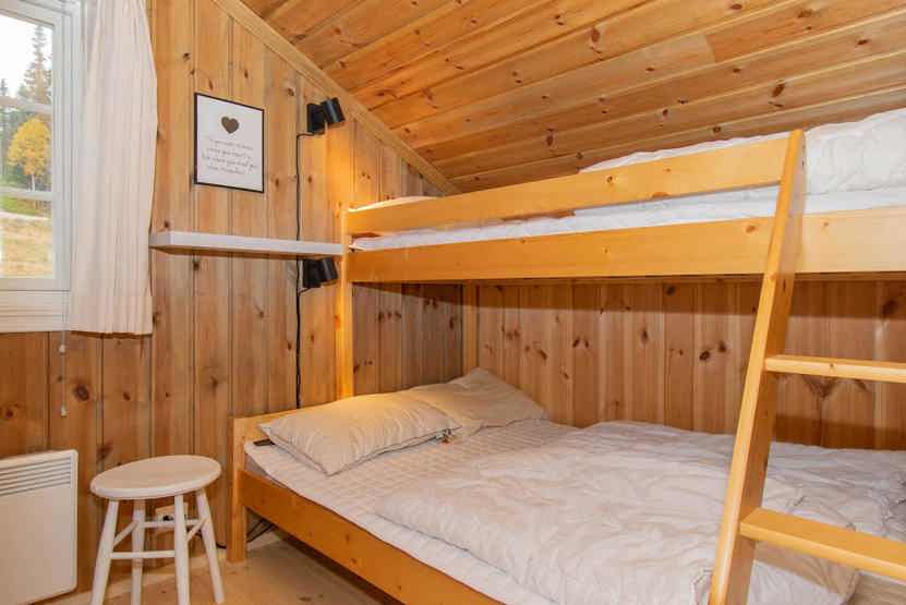 Hytte, 13+2 sengepladser, 160 m², opholdsstue med brændeovn, TV og køkkenafdeling, 6 soveværelser, 2 brusere, 2 WC, 1 sauna, vaskemaskine, tørretumbler, skotørrer, skiopbevaring.