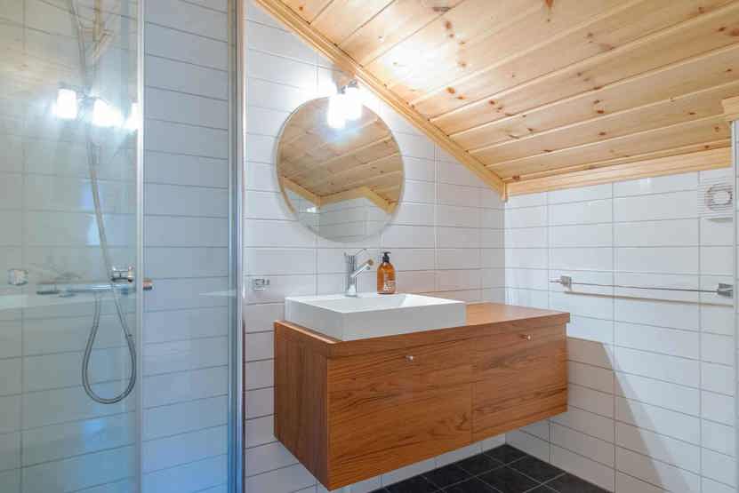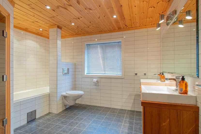 Bad 1 med bruser og WC. Bad 2 med bruser, WC og sauna.