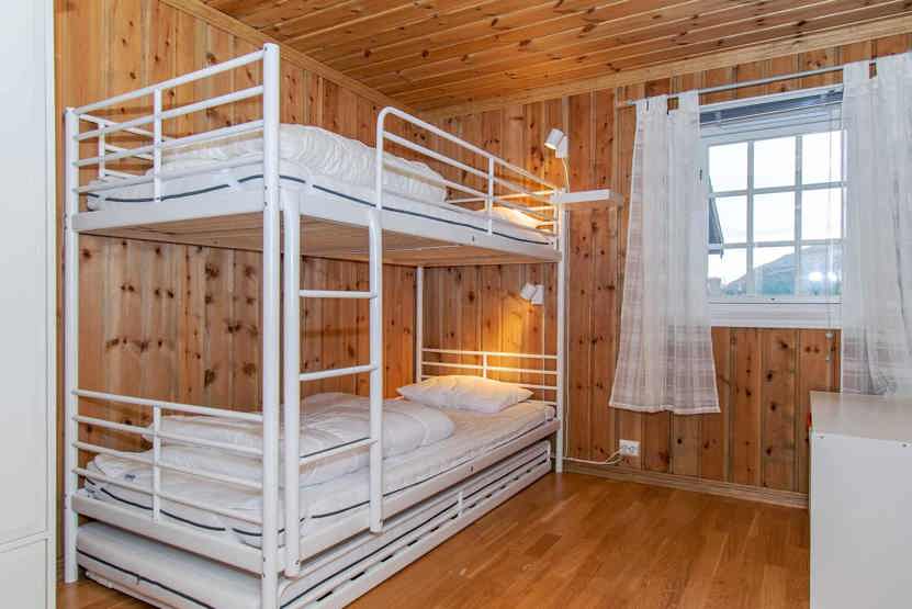 Soveværelse-1= 1 dobbeltseng 180 cm bred. Soveværelse-2= 1 dobbeltseng 150 cm bred. Soveværelse-3= 1 dobbeltseng 150 cm bred, 1 enkeltseng. Soveværelse-4= 1 køjeseng med 120 cm bred underkøje og 75 cm bred overkøje. Soveværelse-5= 1 køjeseng med 120 cm bred underkøje og 75 cm bred overkøje. Soveværelse-6= 1 køjeseng 90 cm bred.