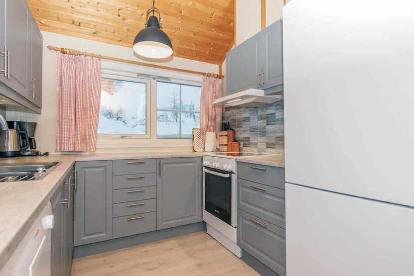Enheden har komfur med ovn, opvaskemaskine, mikrobølgeovn, køleskab, fryser.