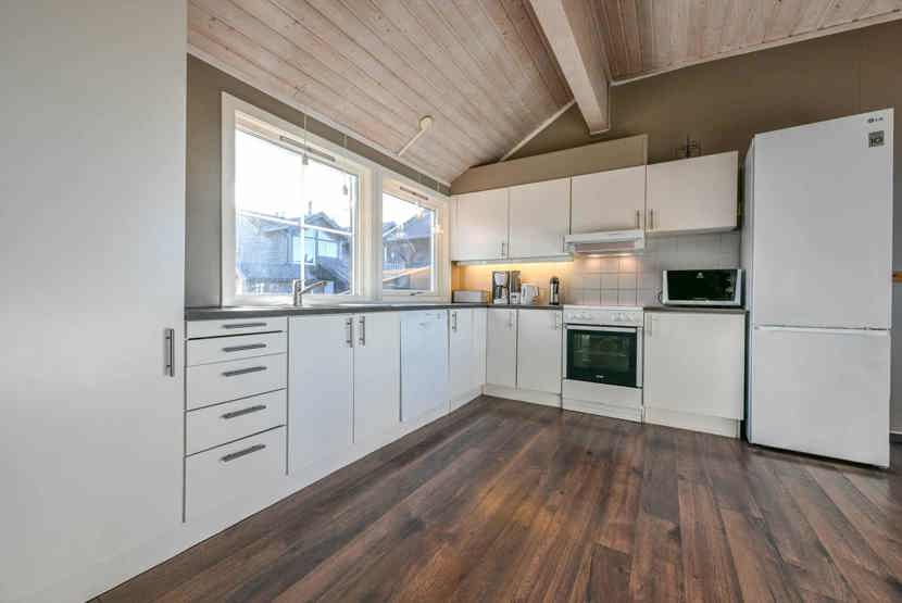 Enheden har komfur med ovn, køleskab, fryser, opvaskemaskine, mikrobølgeovn.
