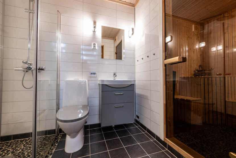 Bad 1: Bruser, WC og sauna. Bad 2: WC.