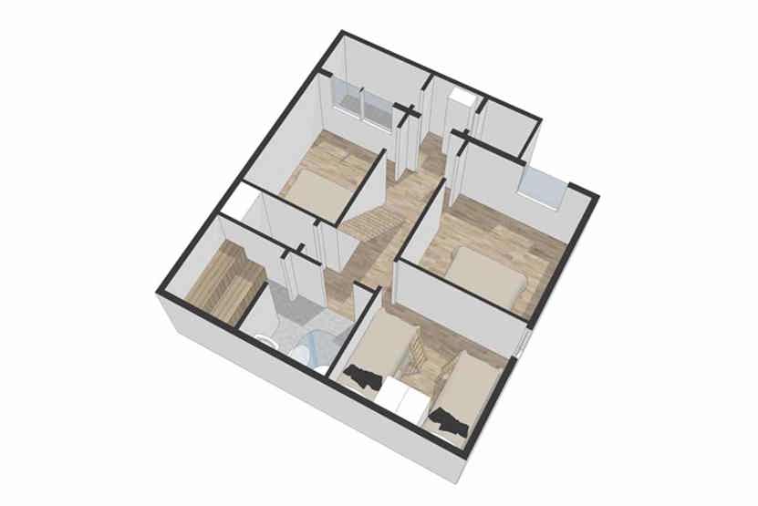 Soveværelse 3: 1 køjeseng med 120 cm bred underkøje og 75 cm bred overkøje, 1 køjeseng.