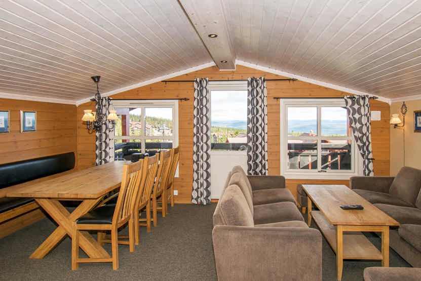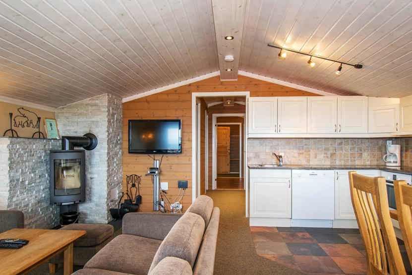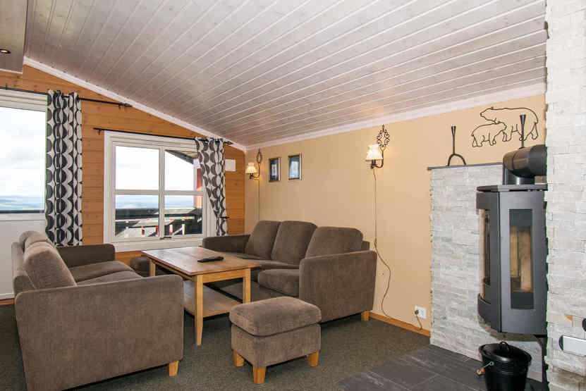 Fjellblikk 37. Lejlighed til dig i stueetage. Moderne og flot lejlighed med 8 sengepladser, 65 m², køkkenafdeling, opholdsstue, pejs, TV, 3 soveværelser, 1 bruser, 2 WC. Skiopbevaring, tørrerum, 2 garagepladser.