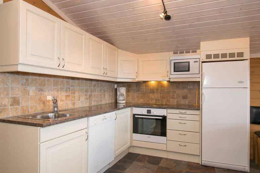 Enheden har komfur med ovn, opvaskemaskine, mikrobølgeovn, køleskab, fryser.