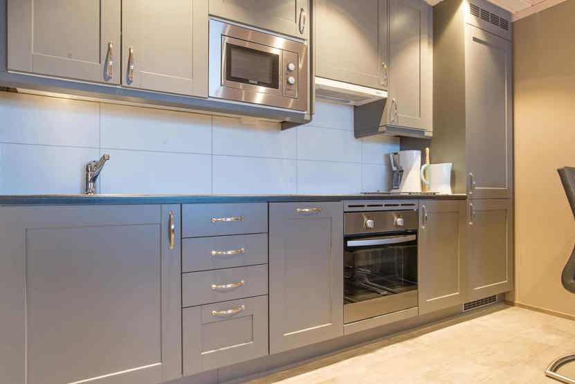 Enheden har komfur med ovn, opvaskemaskine, mikrobølgeovn, køleskab, fryser.