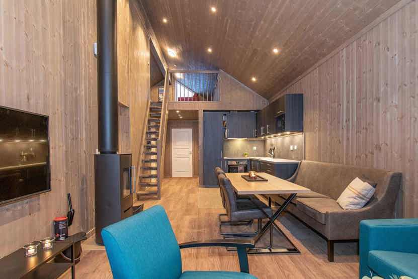 Ekstra info: Opholdsstue med TV, pejsindsats. Skiopbevaring, 1 skotørrer, tørkerom.