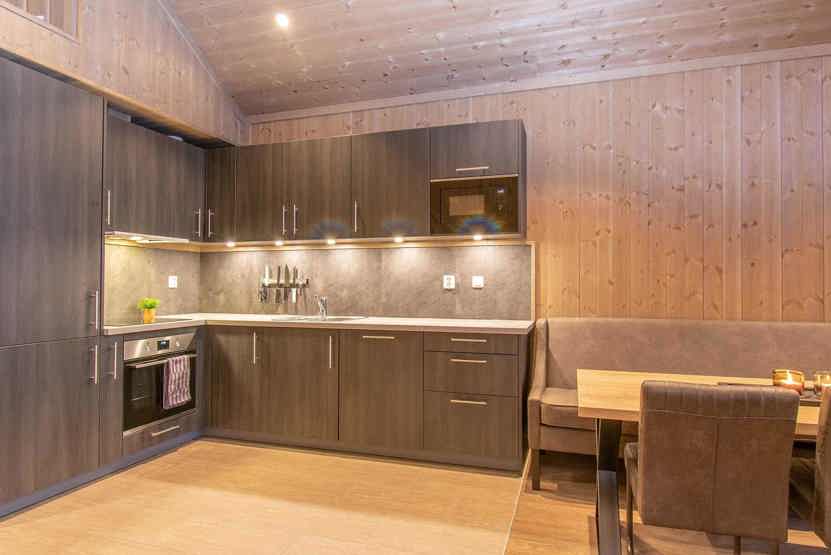 Enheden har komfur med ovn, opvaskemaskine, mikrobølgeovn, køleskab, fryser.