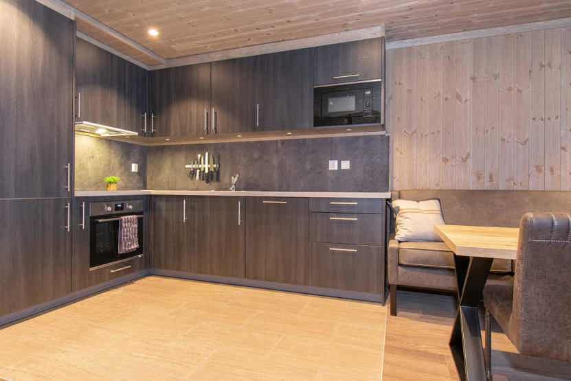 Enheden har komfur med ovn, opvaskemaskine, mikrobølgeovn, køleskab, fryser.