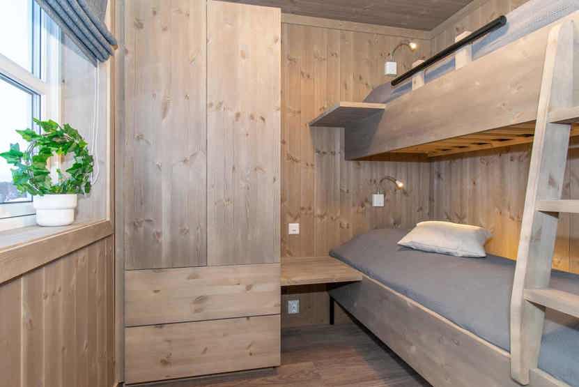 Soveværelse 3: 1 køjeseng med 150 cm bred underkøje og 90 cm bred overkøje.