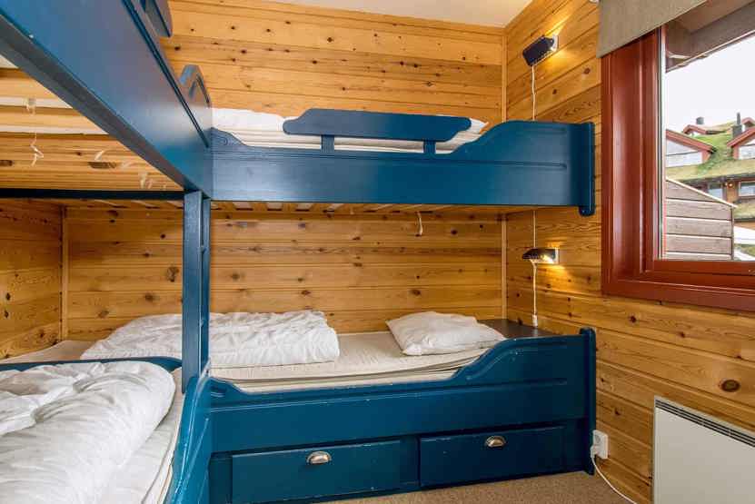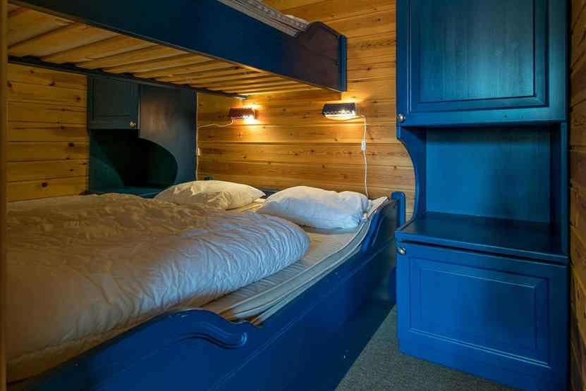 Soveværelse 1: 2 køjesenge. Soveværelse 2: (uden vindue) 1 køjeseng med 150 cm bred underkøje.