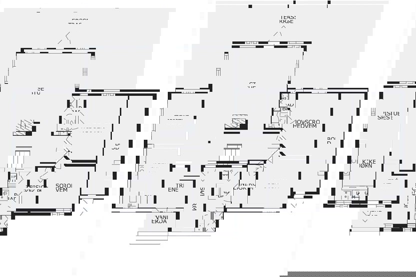 Bad 1 med bruser og WC. Bad 2 med bruser og WC.
