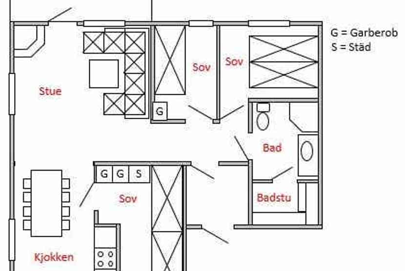 Soveværelse 1: 1 dobbeltseng. Soveværelse 2: 2 køjesenge. Soveværelse 3: 1 køjeseng.