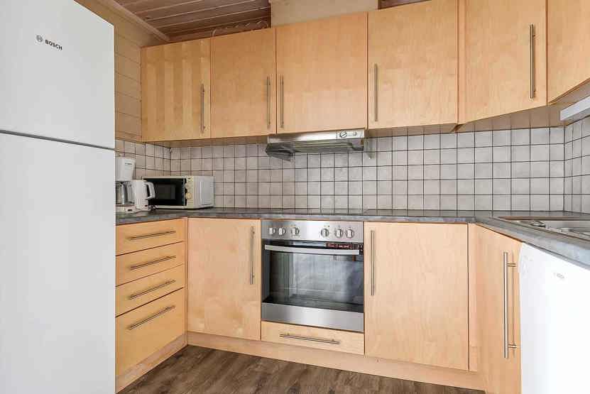 Køkken: Enheden har komfur med ovn, opvaskemaskine, mikrobølgeovn, køleskab, fryser.
