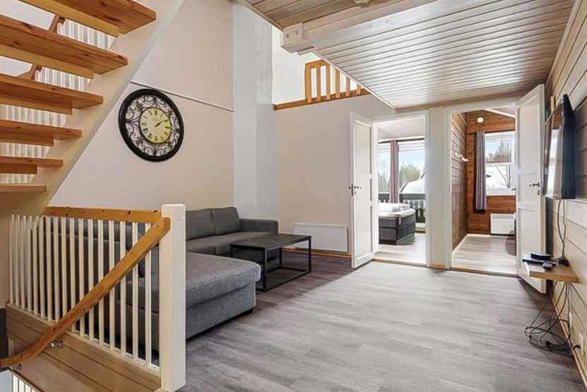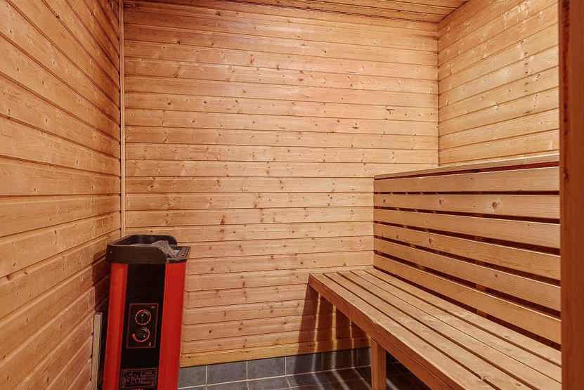 1 sal. Mindre TV-stue med sofa, 2 soveværelser, 1 sovealkove. 1 badeværelse med 1 bruser, 1 WC, sauna. Separat WC.
