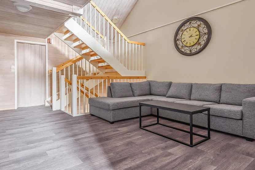 Lejlighed i stueetage med hems, 6+6 sengepladser, 135 m², 3 soveværelse, 1 sovealkove, 2 brusere, 3 WC, 1 sauna.