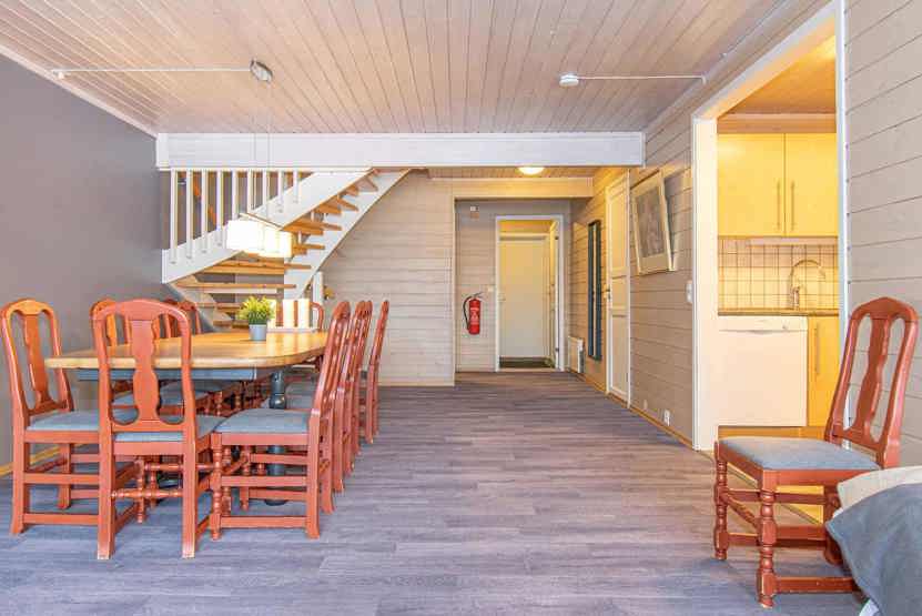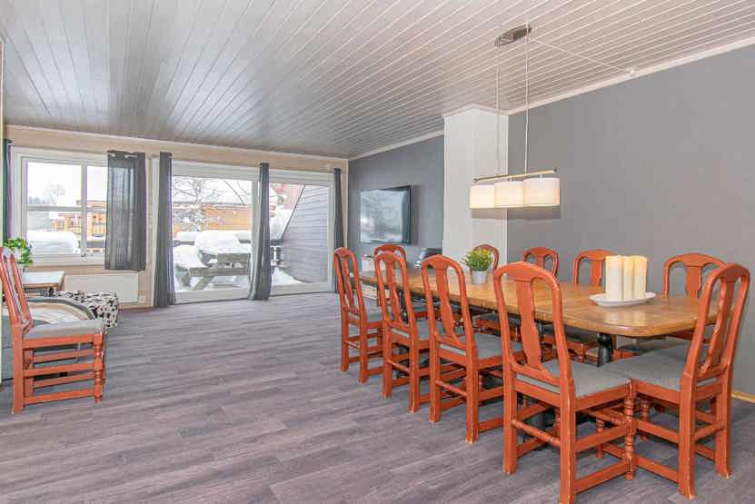 Lejlighed i stueetage med hems, 6+6 sengepladser, 135 m², 3 soveværelse, 1 sovealkove, 2 brusere, 3 WC, 1 sauna.