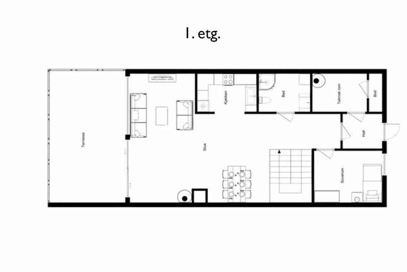 Badeværelser: Bad 1: Bruser, WC og sauna. Bad 2: Bruser, WC. Bad 3: WC