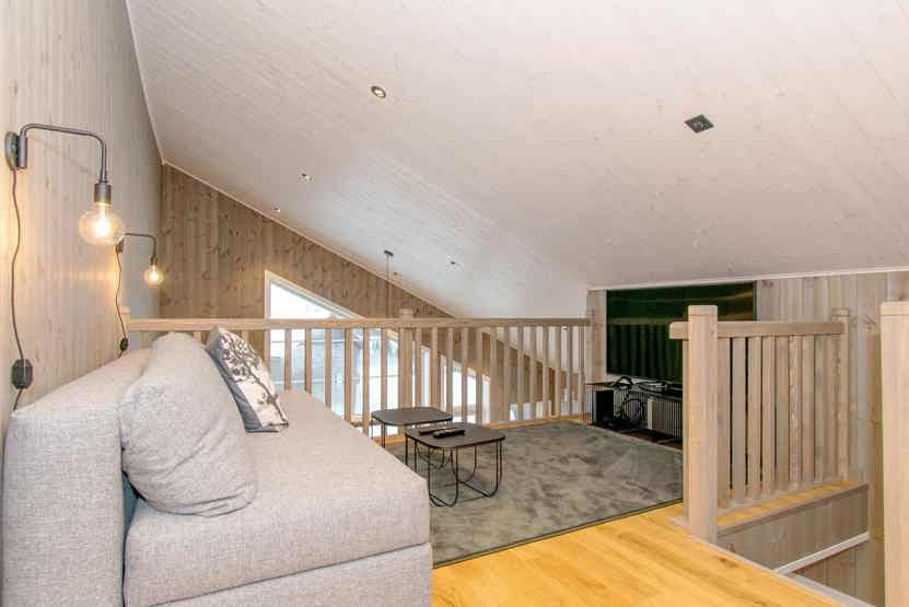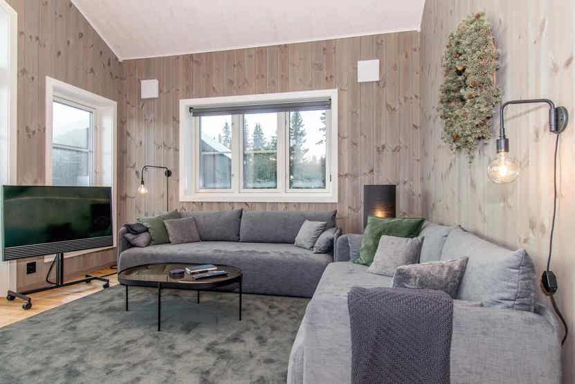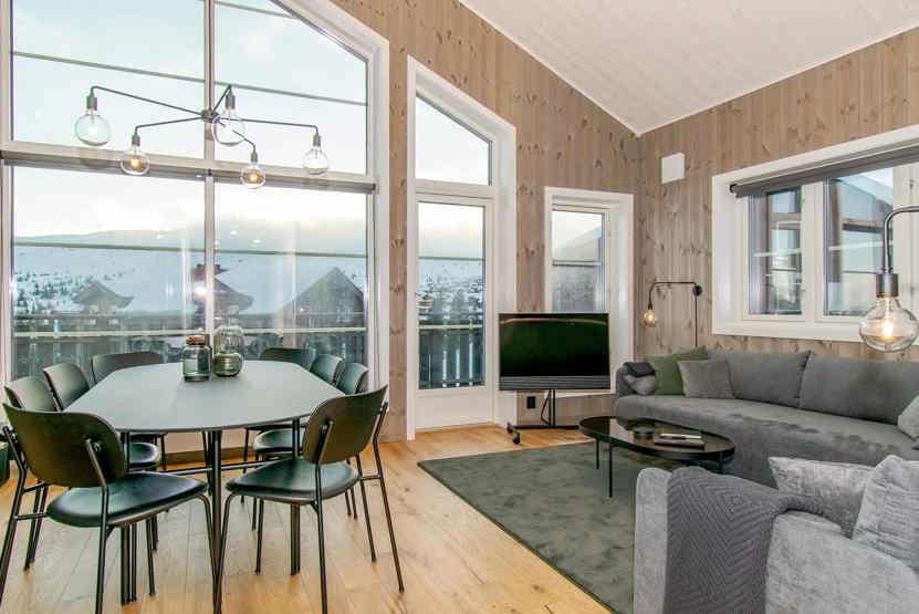 Lejlighed på 1 sal, 6+2 sengepladser, 85 m², opholdsstue med brændeovn, TV og køkkenafdeling, 3 soveværelser, 1 brusere, 1 WC, kombineret vaskemaskine/tørretumbler, tørrerum, skiopbevaring.