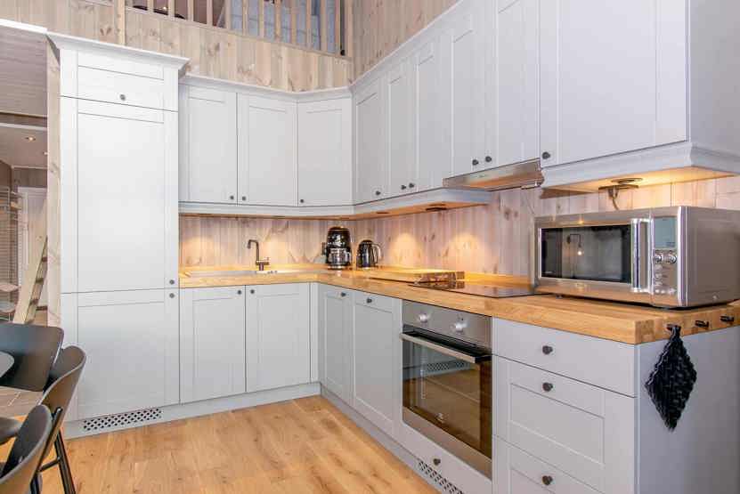 Enheden har komfur med ovn, opvaskemaskine, mikrobølgeovn, køleskab, fryser.