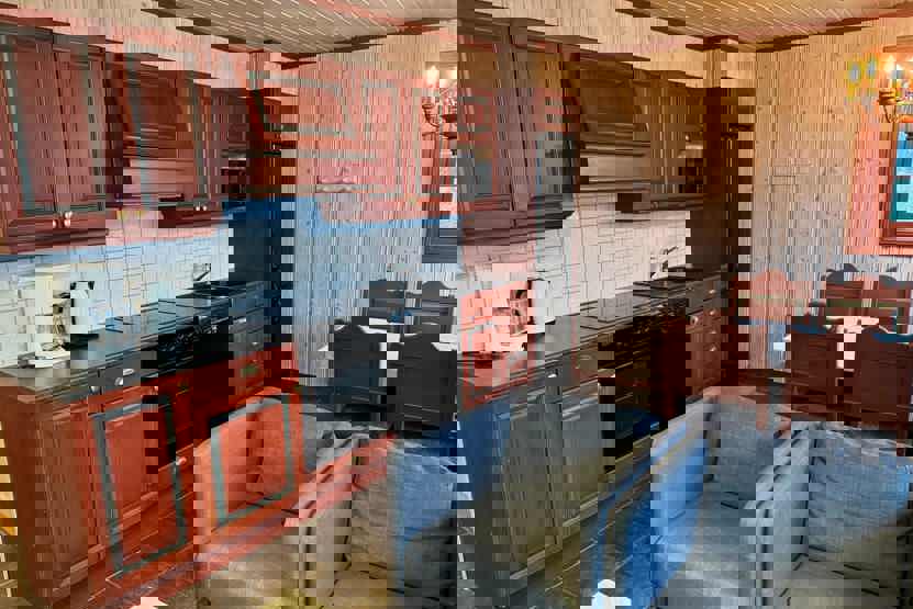 Enheden har komfur med ovn, opvaskemaskine, mikrobølgeovn, køleskab, fryser.