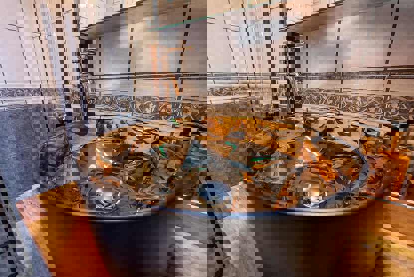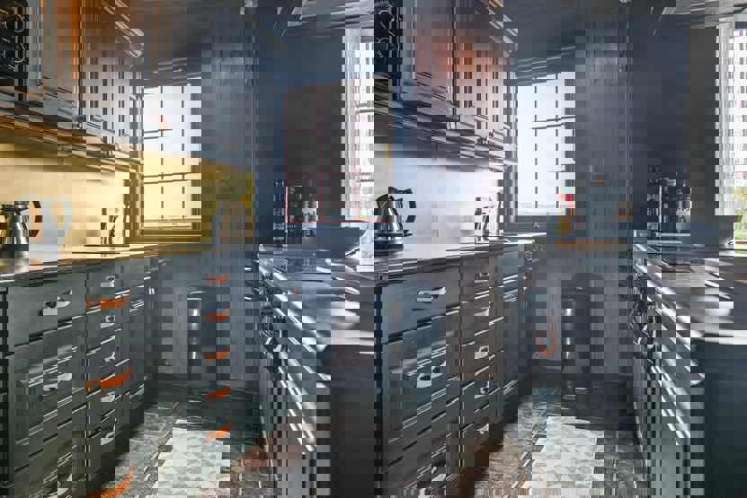 Enheden har komfur med ovn, opvaskemaskine, mikrobølgeovn, køleskab, fryser.