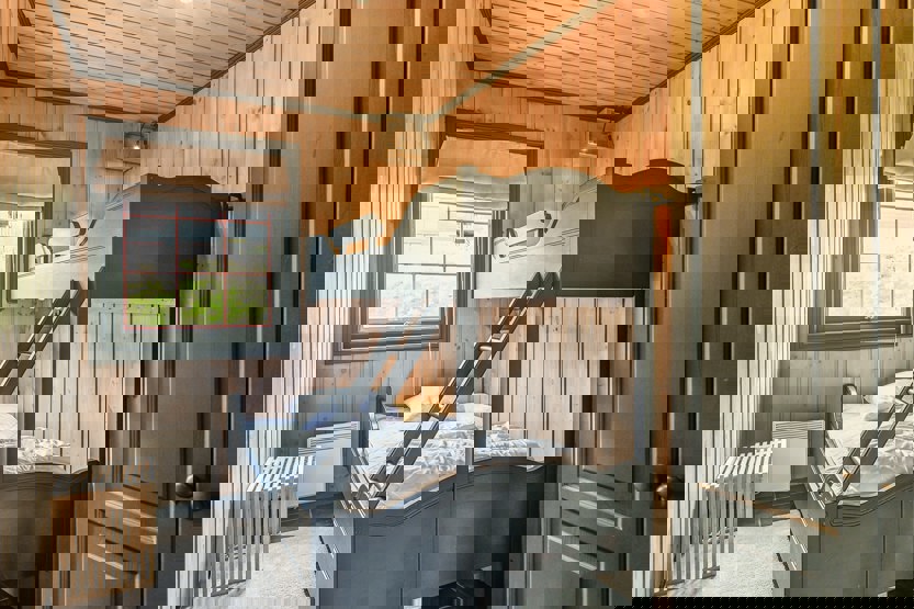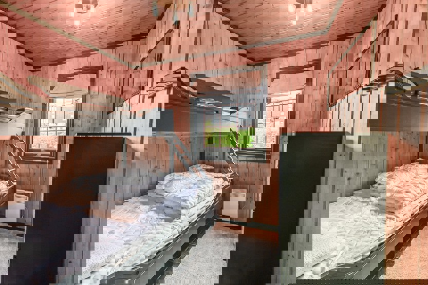 Soveværelse-1= 1 køjeseng med 150 cm bred underkøje. Soveværelse-2= 1 køjeseng med 120 cm bred underkøje. Soveværelse-3= 1 køjeseng med 120 cm bred underkøje.