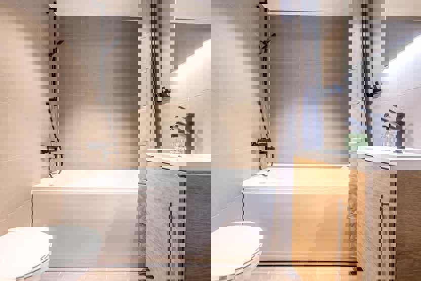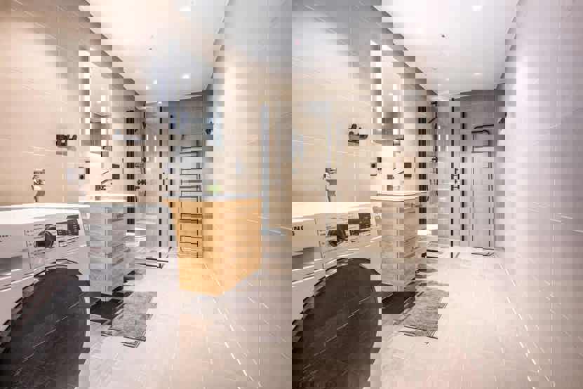 Badeværelser: Bad 1: Bruser og WC, badekar. Bad 2: Bruser, WC