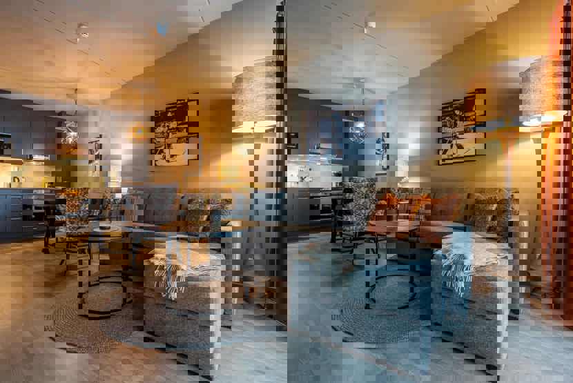 Midgard Trysil lejlighederne ligger i 2 eller 3 etagers huse og er designet til at være moderne lejligheder, men med inspiration hentet fra naturen og fjeldet. Gode varme farver som giver lejligheder hygge og varme, et perfekt sted at slappe af.