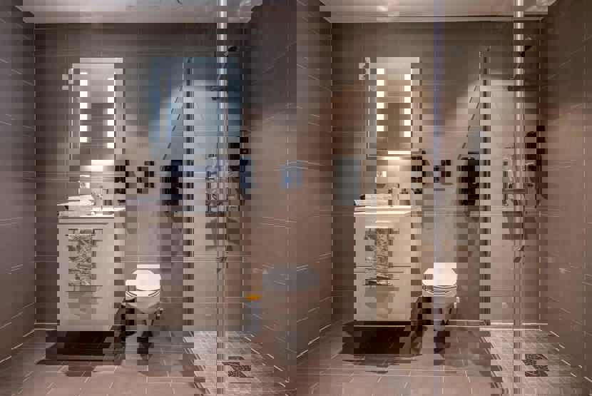 Badeværelser: Bad 1: Bruser og WC